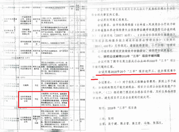 《公主岭市长会议纪要》记载:主持人为张明,出席人员有:段于建、陈占营、高立君、冯翘、张国文,还有公主岭市各部门“一把手”参加了会议。会议纪要要求:(一)对于农民工保障金等费用原则上不予减免,如有特殊情况不能缴纳现金,项目方必须以合法有效资产作为抵押。(二)相关部门要及时办理各项手续,及时出具各种预审材料,避免项目开工后,企业受到行政处罚。(陈祥国说:“这句话好像预知未来”)