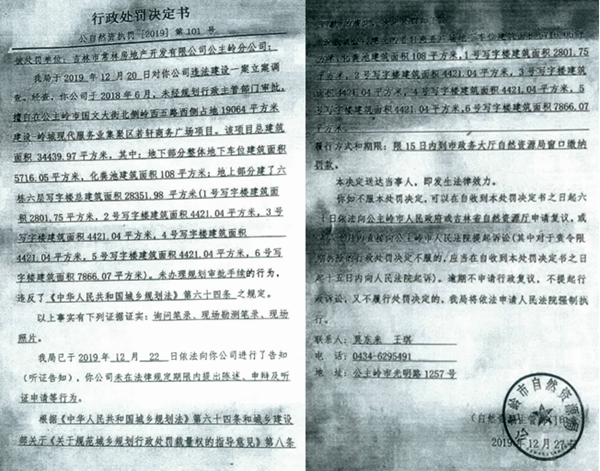 本站讯 2019年12月27日,吉林省公主岭市自然资源局一纸《行政处罚决定书》给“三早”投资竣工项目宣判了“死刑”。
