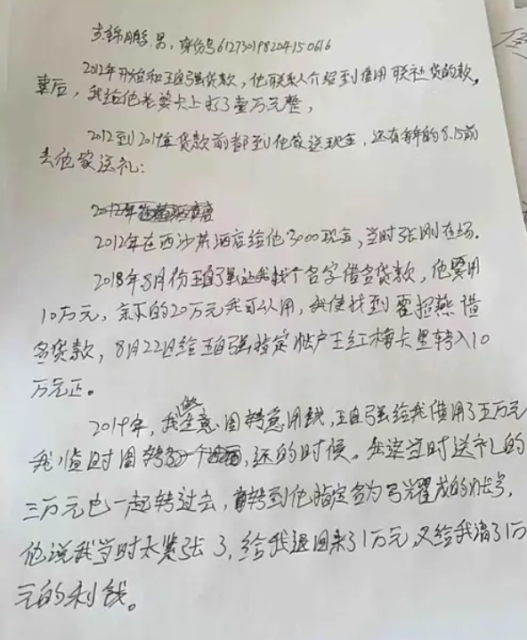 2021年10月12日康女士的代理律师在未央法院办理领款手续,薛琴琴女儿告知王行长说,康女士下午领钱,让王行长赶快阻拦。(录音为证),康女士本人怀疑一开始就是他们合伙欺骗康女士的。王行长说贷款人儿子给他开房子,多次给他提供车子,贷款人儿子收录了语音和视频,因为他拉着别人的老婆去西安,在西安游玩,可见王行长和贷款人的交情深厚。(录音为证)