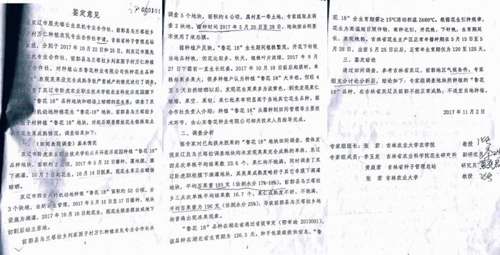 花生大面积减产后,华服公司和六家合作社找到吉林省内最权威的吉林省种子总站。2017年11月2日,省种子站专家组做出鉴定结论,参考双辽、前郭地区气候条件,专家组充分讨论分析后,做出结论:专家组调查地块所种植的“鲁花18”品种,在吉林省双辽及前郭不能正常成熟,不适宜当地种植。