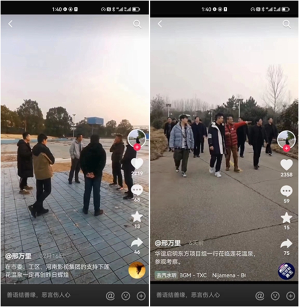 调查三:混淆视听,招摇撞骗。据了解,前几年,万家园公司由于资金链断裂,运作莲花温泉项目时主动寻找合作方,合作方陆续支付了几个亿,取得了莲花温泉项目100%股权,但邢清鑫又霸占着项目,控制着项目不给合作方。同时,邢清鑫及万家园集团利用南阳市委市政府对文旅产业发展的重视,拿着本属于他人的莲花温泉项目,打着政府的旗号到处招摇撞骗。据本网了解,邢清鑫及其万家园集团负债累累,不让真正有实力的投资者合作方开发莲花温泉项目,却邀请不明真相的各类企业到莲花温泉谈合作、谈发展,大谈特谈莲花温泉复工复业、文旅产业的发展,其真实的目的不是为了莲花温泉项目的发展,而是想利用南阳市委市政府对文旅产业发展的重视,来掩盖其非法霸占莲花温泉的事实,也让不明就里的南阳干部群众深深地打上一个问号。