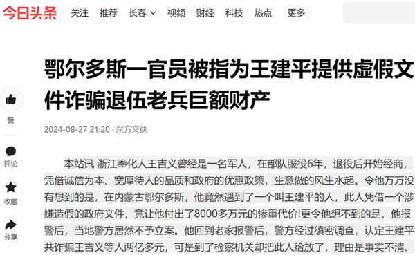 内蒙古鄂尔多斯:王建平被指利用文件诈骗巨额资金却逍遥法外