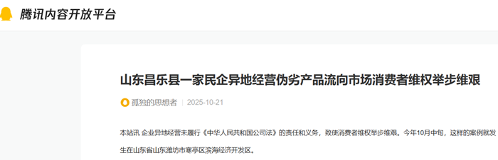 山东昌乐县一家民企异地经营伪劣产品流向市场消费者维权举步维艰