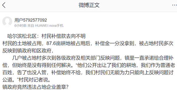 截至目前,记者也没有等到哈尔滨市松江区宣传部关于村民被占土地补偿情况的“答复”。