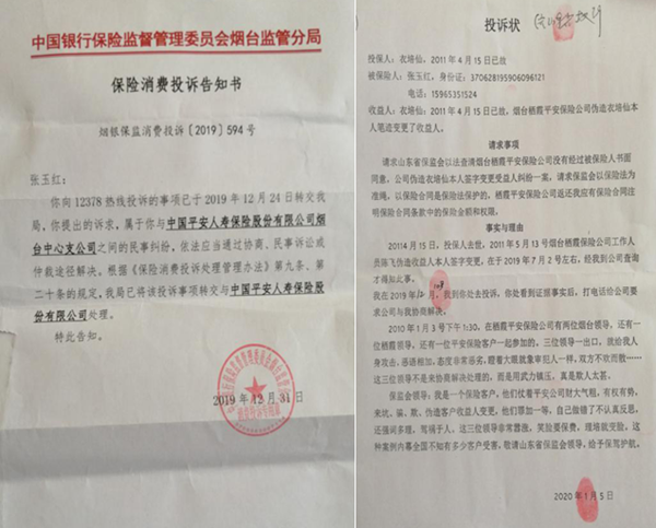 本站讯 “我丈夫于2011年4月15号因突发性脑溢血十分钟就去世了,平安保险公司你们究竟用的什么方法,把他叫来变更的?”日前,张玉红非常气愤地质问中国平安人寿保险股份有限公司烟台中心支公司栖霞公司的经办人。