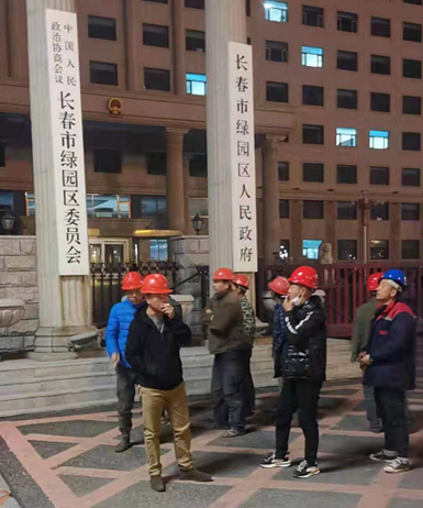 (讨薪工人早早来到绿园区政府门前)