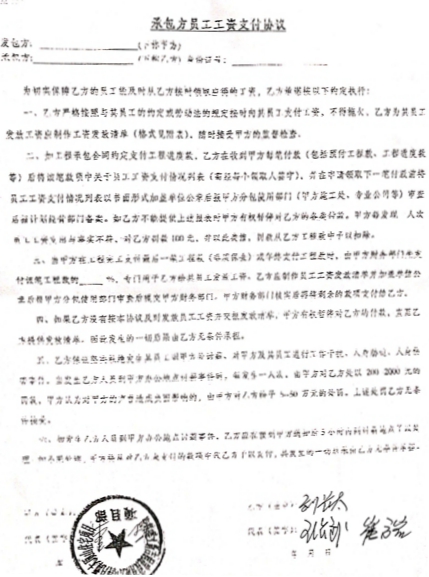 农民工代表们说:其中,刘长太、王彦臣两个班组是从2007年至2010年完工,吉润公司仅仅是对这两个班组就欠工人工资350万之多(注:有待政府部门核实),涉及50多名农民工。