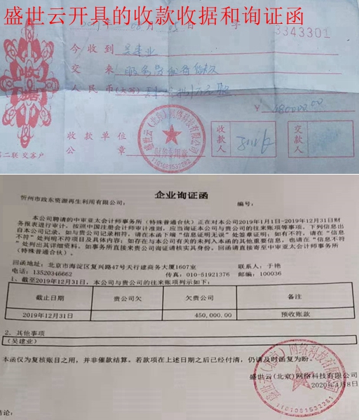 吴建业向记者介绍:2019年7月,政东资源突然接到盛世云的一个电话,声称是忻州市政府提供的企业信息,并要求其参加盛世云的培训。吴以为是政府行为,就参加了盛世云的儒商商学院儒商领袖一阶段课程学习,并于2019年7月7日取得了结业证书。同年7月23日,盛世云作为甲方,政东资源作为乙方鉴定了合作协议。