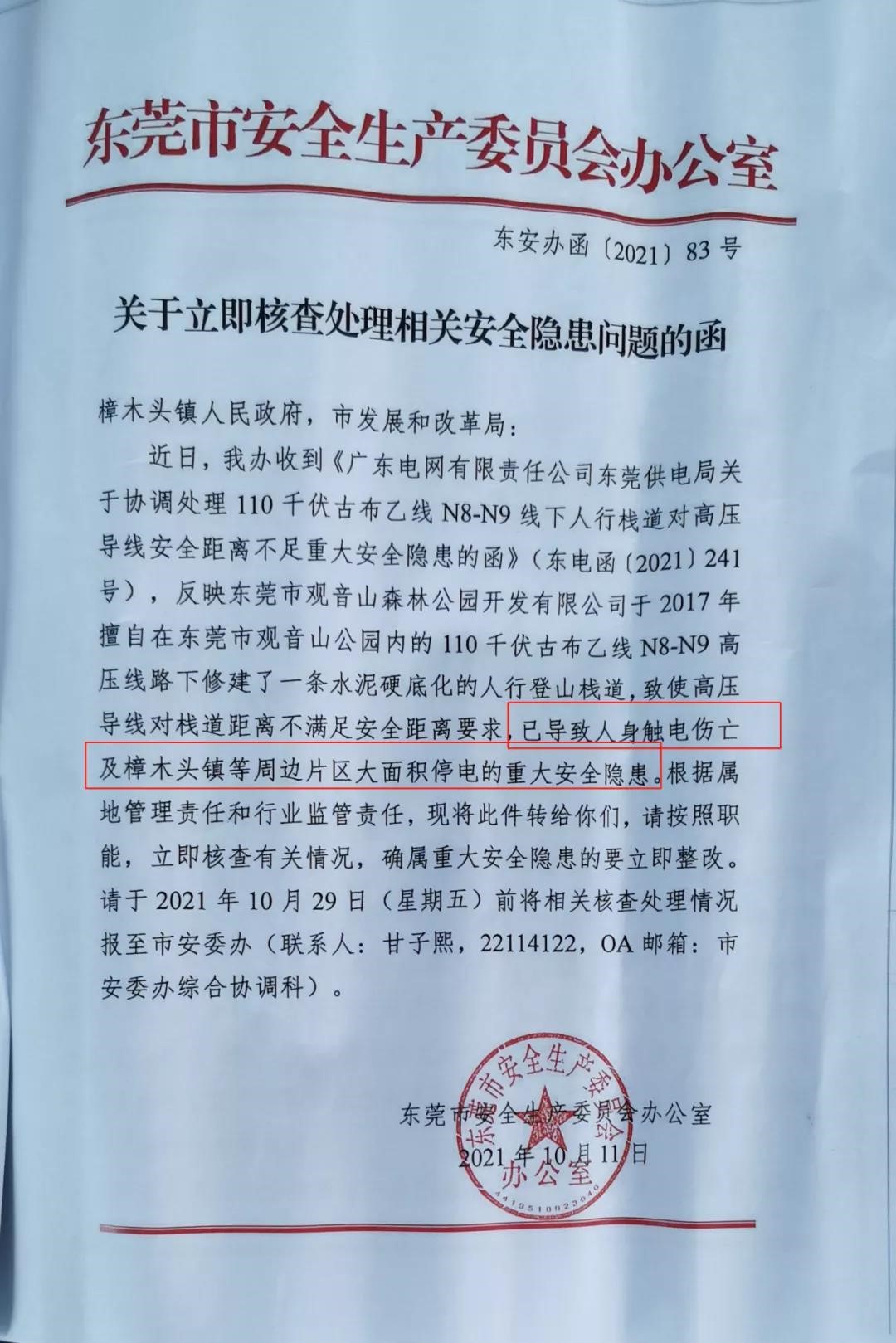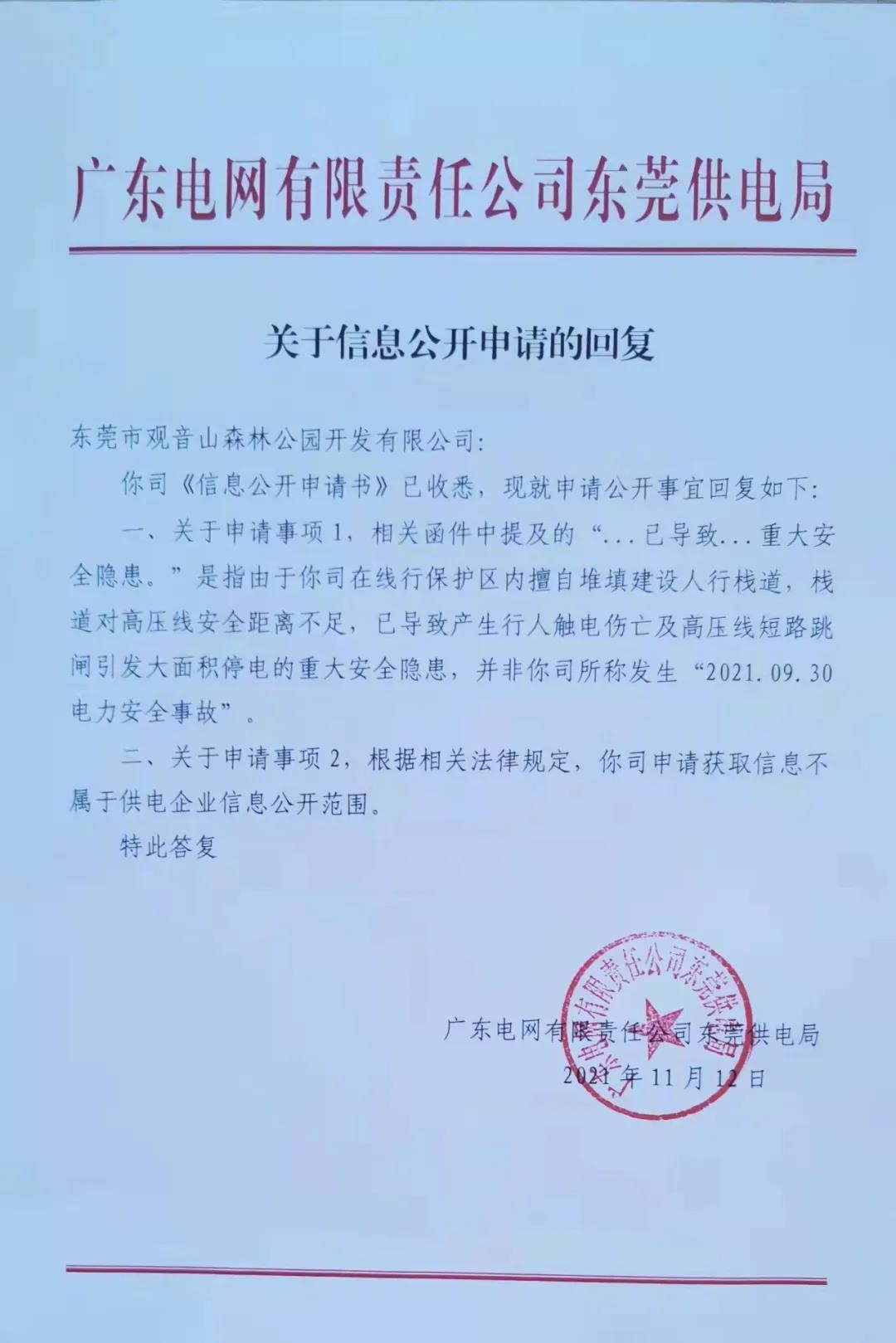 结果,东莞市供电局回函称:我说的是你观音山的原因,已致人触电伤亡的安全隐患,并不是真的有电力安全事故。好吧,就算虚惊一场,那么,以下问题该作何解释呢?