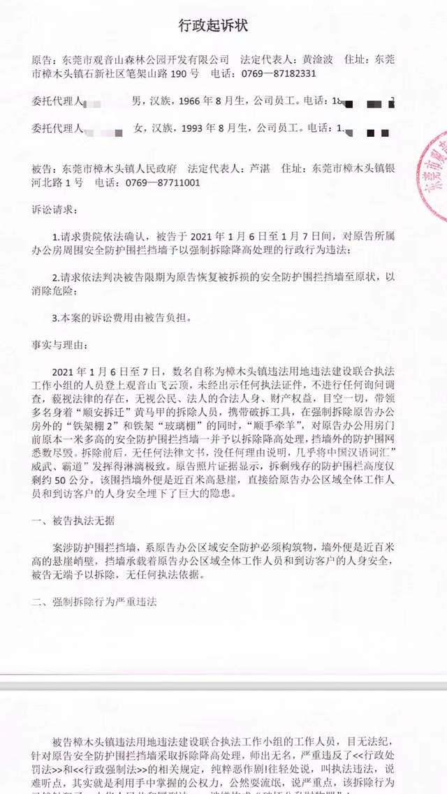 四、被逼无奈,饱受摧残折磨的观音山只能于2021年7月7日向东莞市第一人民法院提起行政诉讼,结果败诉。继而上诉至东莞市中级人民法院,依旧败诉,驳回全部请求。2021年10月16日,观音山公园向东莞市公安局樟木头分局报案,最后……(无果)
