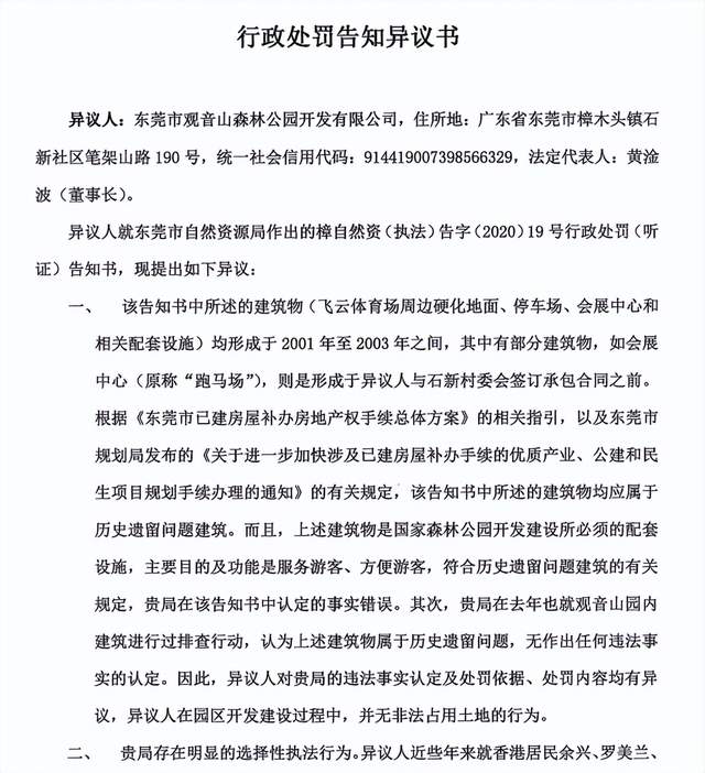 二、公园方对东莞市自然资源局选择性的顶格处罚,据理力争,提出行政处罚告知异议书,逐一反驳其荒诞巨额处罚。
