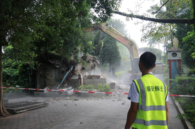 配图:公园管理设施法雨台被拆现场。