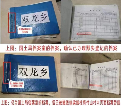 上图:村支书正江伪造默失手续村民罗淑媛宅基地修建付家山村民委员会。