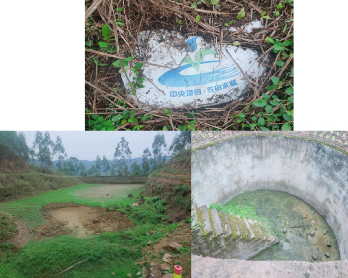 上图:中央财正项目修建的防旱池及山坪塘滴水不装。