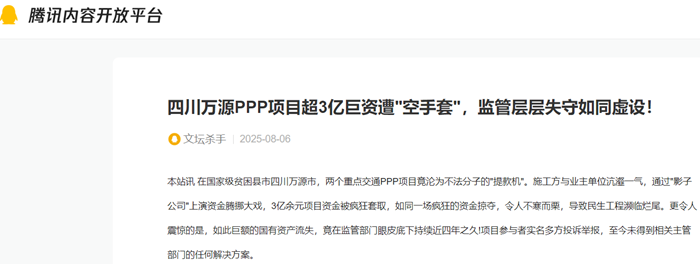 四川万源PPP项目超3亿巨资遭"空手套",监管层层失守如同虚设!