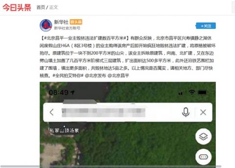 今年3月份,北京昌平区兴寿镇静之湖休闲度假山庄的一别墅业主被曝违建。昌平区官方通报称,扩建情况属实执法人员责令其立即停止施工,拆除违法建设并恢复原貌。而之后,该别墅业主又遭举报称,其建筑仍存违建。对此,官方称“正在研究拆除路径及实施方案。”