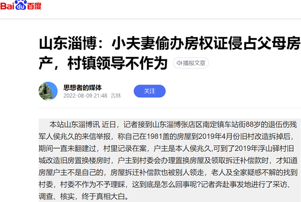 本站山东淄博讯 近日,记者接到山东淄博张店区南定镇车站街88岁的退伍伤残军人侯兆久的来信举报,称自己在1981盖的房屋到2019年4月份旧村改造拆掉后,期间一直未翻建过,村里记录在案,户主是本人侯兆久,可到了2019年浮山驿村旧城改造旧房置换楼房时,户主到村委会办理置换房屋及领取拆迁补偿款时,才知道房屋户主不是自己的,房屋拆迁补偿款也被别人领走,老人及全家疑惑不解的找到村委,村委不作为不予理睬,这到底是怎么回事呢?记者奔赴事发地进行了采访、调查、核实,终于真相大白。