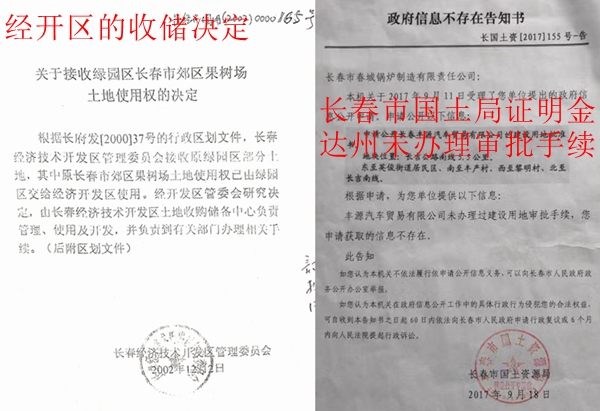 2021年2月19日,由二道经济开发区更名的长春国际物流经济开发区管委会给英俊镇政府签发长物经管函【2021】15号《关于明确金达州和春城锅炉边界线及权属的函》的复函,将春城锅炉厂正在使用的土地违法确认给金达州,强行剥夺了春城锅炉厂土地使用权。