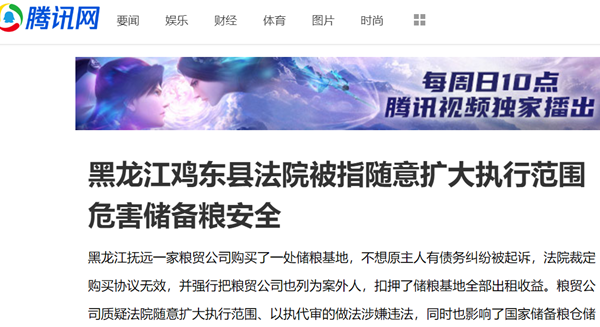 黑龙江抚远一家粮贸公司购买了一处储粮基地,不想原主人有债务纠纷被起诉,法院裁定购买协议无效,并强行把粮贸公司也列为案外人,扣押了储粮基地全部出租收益。粮贸公司质疑法院随意扩大执行范围、以执代审的做法涉嫌违法,同时也影响了国家储备粮仓储安全。