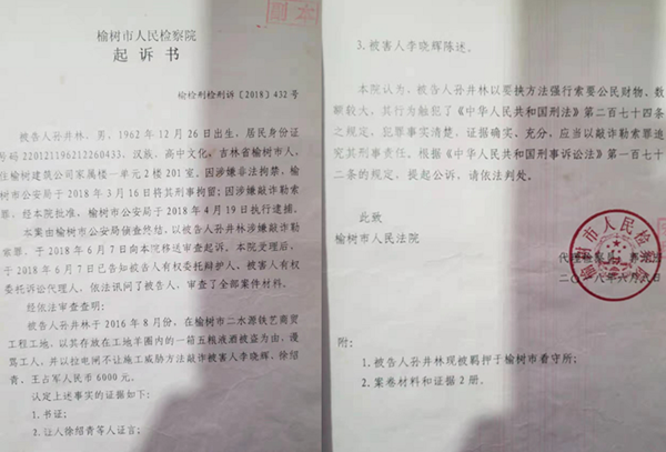2018年11月10日,榆树市人民法院根据起诉书作出(2018)吉0182刑初400号刑事判决书判决:“被告人孙井林犯敲诈勒索罪,判处有期徒刑十个月,并处罚金人民币五千元”;“责令被告人孙井林退赔被害人李某辉经济损失人民币六千元”。