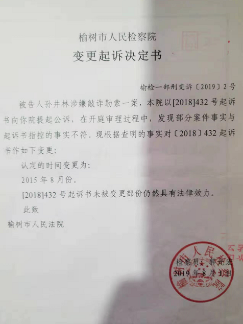 榆树市人民法院接到长春市中级人民法院作出的裁定后,依法另行组成合议庭重新审理,榆树市人民检察院同时变更起诉决定,变更内容却与“案件事实”和“指控的事实”没有任何关系,只是把“认定的时间”作了变更。而《变更起诉决定书》中的最后一句“【2018】432号起诉书未被变更部分仍然具有法律效力”给人留下很多想象的空间。