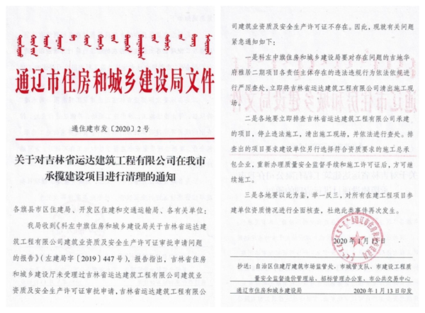 通辽市科左中旗农民讨薪牵出建筑商资质造假