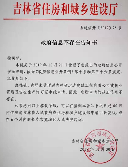 就在开发单位换成金源地产之后,科左中旗住房和城乡建设局找到徐凤琴,要求她提供建筑资质另行签订建筑工程施工合同。在听说吉林省运达建筑工程有限公司(以下简称运达公司)具备建筑一级资质后,她便联系到了运达公司法定代表人王俊举。王俊举同意在收取管理费的条件下出借资质,以运达公司名义与金源地产签订吉地华府建设工程承包施工合同书。