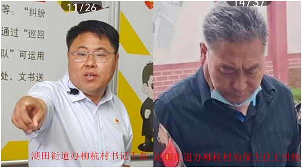 记者据此采访了柳杭村居委会书记于磊,但不管记者怎么问,于磊就一句话:“我没打” 。期间,于磊还给湖田街道办打电话,湖田街道办来了一位姓刘的宣传部委员,问我们什么情况。记者向他询问:“书记于磊打残老人,强拆退伍军人房屋的问题是否有这种事情?如果有这种事该如何解决?”刘的回答是:“老人被打你们找广场派出所,房屋被拆你们找法院”。记者又到当年老人被打后报案的广场派出所了解情况,值班民警看了记者的证件后说:“你们这个证,我们没有答复的权力,这是上边的指示,你们采访必须有中联办的介绍信,我们才接受采访”。