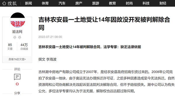 农安县法院判决解除出让合同 公司质疑存在影响公正等行为