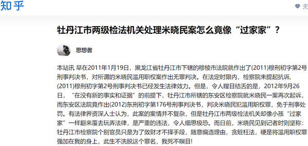 2012年9月26日,对米晓民案“在没有新的事实和证据”的前提下,牡市检察院授意本市所辖东安区检察院将其起诉至东安区法院。