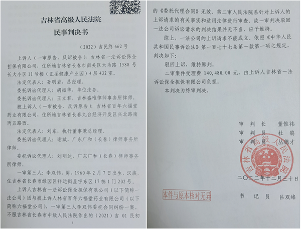 吉林省高院作出委托代理合同无效的判决