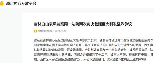 曾经在吉林省乃至全国引起巨大轰动的袁凤友案,随着吉林省辽源市西安区法院的前后两次判决和袁凤友妻子宇洪梅在网上喊冤,再次成为网上的热点和人们街谈巷议的话题,西安区法院先是以敲诈勒索罪、开设赌场罪,合并判处袁凤友十六年有期徒刑。被发回重审后,法院将开设赌场罪改为赌博罪,两罪合并仅仅判了十二年。被害人不服,提出抗诉申请,日前,西安区人民检察院已经提起抗诉。人们不禁要追问,此案还能不能得到公正的审判?