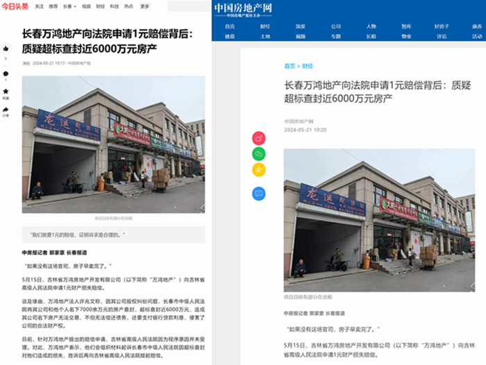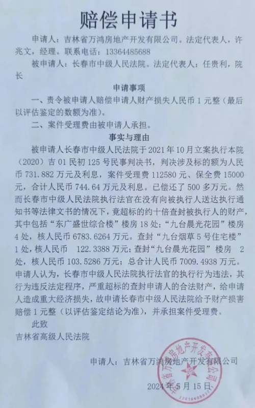 相关文章:长春万鸿地产向法院申请1元赔偿背后:质疑超标查封近6000万元房产