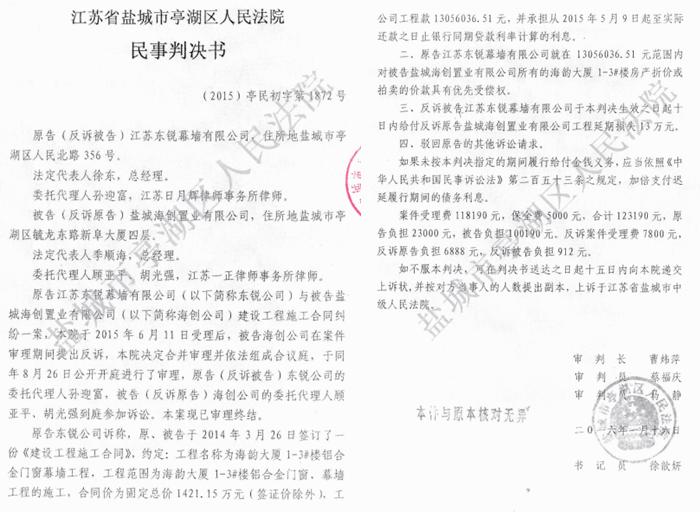 2017年苏09执复第57号执行裁定书采用双方未签字盖章的空白“商品房买卖议定书”作为证据,不听证、不质证、不开庭,并认定是江苏东锐幕墙有限公司法定代表人徐东与海创公司签订的事实(见57号裁定书第7页)。据调查,此“商品房买卖议定书”是法官王珩2017年8月21日到盐城市不动产中心外网打印,并非住建局官网打印,市住建局认为合同上网是企业行为,不能确认是否签订。2015、6、25是王珩手工标注,此合同不应该在网上存在26个月,正常是6个月。但是,亭湖区法院2019苏0902执恢667号执行裁定书,省高院2018苏执监585号,盐城市中级人民法院苏09执复14号,省高院2020苏执监1270号执行裁定书坚持裁定“商品房买卖议定书”为事实存在。