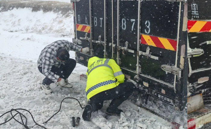 大风、暴雪导致气温急剧下降,执勤民警采取定点执勤与流动巡逻相结合方式,在事故多发、积雪结冰路段设置临时执勤站点,最大限度地预防和减少道路交通事故发生,打开了一条又一条“安全通道”。