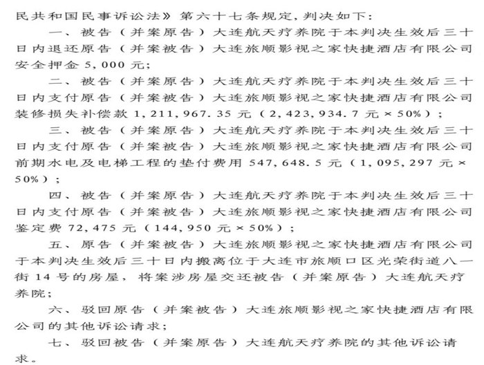 租赁方为大连旅顺影视之家快捷酒店有限公司,出租方为航天科工三院下属的大连航天疗养院,一审法院为大连市旅顺口区法院。