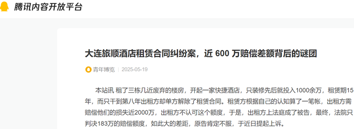 大连旅顺酒店租赁合同纠纷案,近 600 万赔偿差额背后的谜团