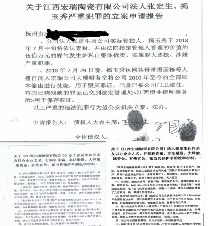2018年8月2日, 债权人在举报材料中指出,赖某某身为抚州中院的执法者,却干着践踏法律、包庇、放纵犯罪,无视党纪国法的勾当。有这样一个事实,在“王云生诉江西宏瑞陶瓷有限公司债务及煤炭款一案”之后的强制执行期间,宏瑞公司依然加班加点生产,每天都有七八十万元的营业收入,可是在几个法院内鬼的庇护下,该公司依然能够做到资金帐外循环。