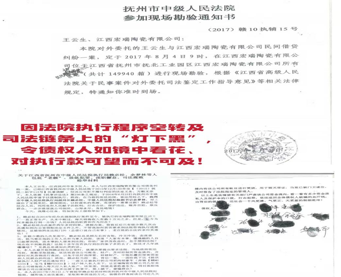 王云生和其他债权人曾多次向上级举报反映,不料抚州中院负责此案的执行人却精心策划了一个闹剧: