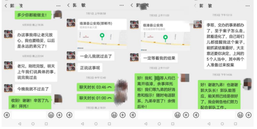 受害人李某某讲:“当初郭某照非法办案,将一件普通的经济纠纷案办成了刑事案、人情案。我为了救与本案毫不相干的赵某,经人介绍,郭某敏愿意帮忙找郭某照调解此事。郭某照让郭某敏传话,要想让公安不动赵某,需要先给10万元。另外五人若想没事再交40万元(后郭某敏又改口30万元)办取保,同时还要准备给另一涉案人史鹏飞(郭某照及临漳县某些直接领导的朋友)200多万此案才能了结。我因为救人心切,先给了10万(同时郭某照声称为我办事请领导吃饭花销数千元,我又多给了5000元),之后因为没有及时筹好巨额敲诈款,引起郭某照的不满和疯狂报复,以近乎于‘莫须有’的罪名将我儿实施非法‘监视居住’,以达到其办人情案、敲诈勒索的目的!我要向河北省各级纪委实名举报,并呈上所有与此有关的微信聊天截图、录音录像,揭露这个藏在公安队伍的害群之马!也希望河北省政法系统能够真正的刀刃向内,刮骨疗毒!”