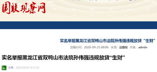 实名举报黑龙江省双鸭山市法院孙伟强违规放贷“生财”