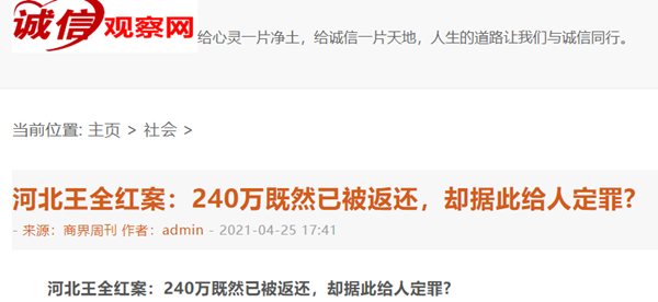 河北王全红案:240万既然已被返还,却据此给人定罪?