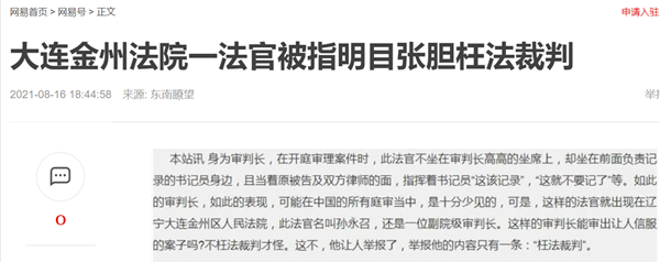 本站讯 身为审判长,在开庭审理案件时,此法官不坐在审判长高高的坐席上,却坐在前面负责记录的书记员身边,且当着原被告及双方律师的面,指挥着书记员“这该记录”,“这就不要记了”等。如此的审判长,如此的表现,可能在中国的所有庭审当中,是十分少见的,可是,这样的法官就出现在辽宁大连金州区人民法院,此法官名叫孙永召,还是一位副院级审判长。这样的审判长能审出让人信服的案子吗?不枉法裁判才怪。这不,他让人举报了,举报他的内容只有一条:“枉法裁判”。