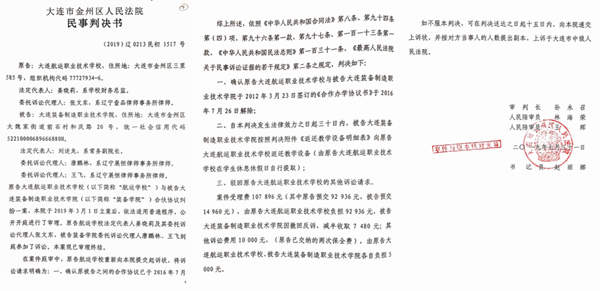 刘宝汉接手装备制造学院之后,他可不会容留这位本地并有着多年办学经验的姜晓莉的,虽然十年的合同还远远没有到期,于是姜晓莉向新的装备制造学院主人刘宝汉按合同讨要办学分成和投入的教学设备,刘宝汉找出很多理由不给,无法,姜晓莉将刘宝汉告上法庭。没想到的是,她的这一举动,彻底激怒的刘宝汉和他儿子,他们并扬言:”你敢打官司,信不信我用钱砸死你!”她太小看这位在当地当了几十年村书记的能量了。但让姜晓莉欣慰的是,当时大连市金州区法院的两位法官比较秉公办案,两个案件一审判刘宝汉的装备制造学院还姜晓莉合作收益及垫付的设备总共800余万元。刘宝汉当然不服,上诉后,两个案子回到金州区法院副院级审判长孙永召一人之手,结果,这800余万元变成了90余万元,这正是刘宝汉想要的结果,在姜晓莉看来,这也是开庭前,刘宝汉与法官孙永召商量好的结果。