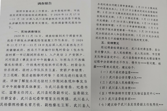 本人是原呼和浩特市发改委派驻武川县西乌兰不浪镇什拉兔村第一书记兼工作队长。2018年11月23日,本人因村里扶贫事宜所急,陪客稍许饮酒后驾车上路。不料途中脑病突发(《内蒙古医科大学附属医院》病历可证明),造成车子失控事故。而后,武川县交警大队、呼和浩特市公安局物证鉴定所、武川县法院等政法单位置法律证据的严谨于不顾,以一系列漏洞百出,经不起考究的存疑和违法证据,生拉硬拽将本人判为醉驾。经申诉,该案得到内蒙古自治区各级主要领导的关注,为此责成呼和浩特有关部门对此案进行了调查,目前得到结论是:武川县交警大队、法院、检察院、市公安局鉴定中心等相关部门,因工作中存在不作为、慢作为等问题,相关责任人受到了党政纪惩处。