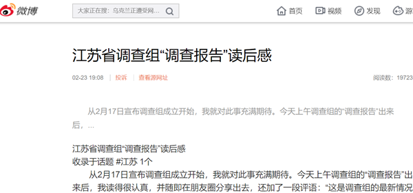江苏省调查组的这份通报,如果是在前调查的基础上形成的,在调查环节是否存在瑕疵呢?人们依据什么来认定这“第五次通报”的结论是可靠的呢?
