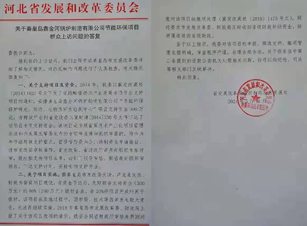 直到2021年5月18日,河北省发改委才给我们做出正式的书面答复。请问,河北省发改委,对此事件有什么隐瞒之处?为什么四年之后才给书面答复?其中隐藏着什么违法行为?河北省发改委做出的《关于秦皇岛鑫金河锅炉制造有限公司节能环保项目群众上访问题的答复》第二条称:2018年秦皇岛市发展改革委、财政局上报了关于该项目撤项的请示,委员会同省财政厅审核并原则同意对该项目做撤项处理(冀发改高技【2018】1475号文),同时要求市发展改革委、财政局及时收回省级财政补助资金,按原渠道退回省级财政。可是,秦皇岛市公安局海港分局,没有执行河北省发改委的批示要求,海港分局(办案人员赵大杳、孙建年)违法把公司总经理胡树海以公司名义上缴的240万元财政补贴款,在一年后又返还给胡树海个人(有海港分发还物品文件清单为证)。