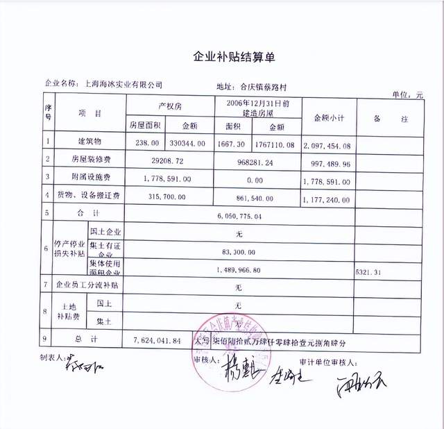 (企业补贴结算单)