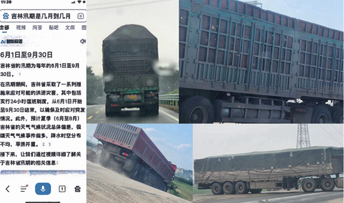 (图为汛期规定和超载车辆)
