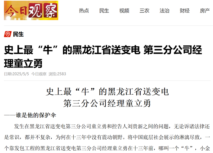以上6份合同共计人民币1980.5165万元,童立勇分包给徐忠杰、韩士林、马春锐等三人。工程结算款转入控告人刘贵新公司账户后,童立勇指令控告人刘贵新将工程款转给郭志强等19个自然人,共153笔,总额为3152.079875万元,童立勇利用黑龙江省送变电工程公司第三分公司经理的权利和便利条件,以权谋私,获取利益数千万元人民币,据为己有。刘贵新说:因为童立勇侵占刘贵新的钱多年来分文未还,致使刘贵新时年50岁的妻子吴洪华因为没钱生活于2024年11月30日中午自杀了,刘贵新也因生病生命垂危无钱医治。这可真是应了世上流传的那句话:钱是杀人不见血的刀。自2025年4月5日今日头条:《哈尔滨人刘贵新实名举报国企经理童立勇利用职务之便谋利超千万元》后,黑龙江省送变电董姓纪委领导主动联系刘贵新,说尽快处理此事,并且在2025年4月25日记者也打电话联系董姓纪委领导催促快办此事,董姓领导也满口答应一定快办,可但是事隔一个月的今日“还杳无音信”。刘贵新急等用钱救命,但不知黑龙江省送变电工程公司是保护哪一方。记者基于同情弱者,也非常着急让黑龙江省送变电快点解决童立勇和刘贵新的问题,毕竟这是刘贵新的救命钱,因为钱已经被逼死一条人命了,还想因为钱再夺走刘贵新的生命吗?